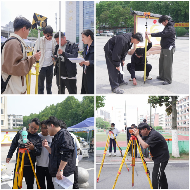 本次考核采用现场实操的方式,分为工程测量和CAD绘图两个类别,其中工程测量实操考核包括水准仪测量及全站仪放样两项;CAD绘图包括道路工程、桥台三视图及桥墩构造绘图三项。