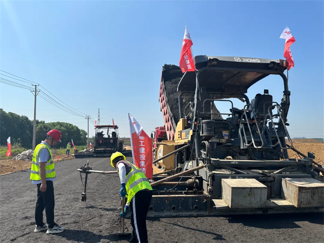 为确保黄店路现场水稳摊铺施工的进度和质量,一分公司官亭项目施工现场机器轰鸣,人声鼎沸,一派繁忙景象。建设者们利用周末晴好天气,加班加点抢抓施工进度。同时,项目严格把控安全质量管理,做到人人身上有任务,个个肩上有责任。目前,项目已完成水稳摊铺500米。