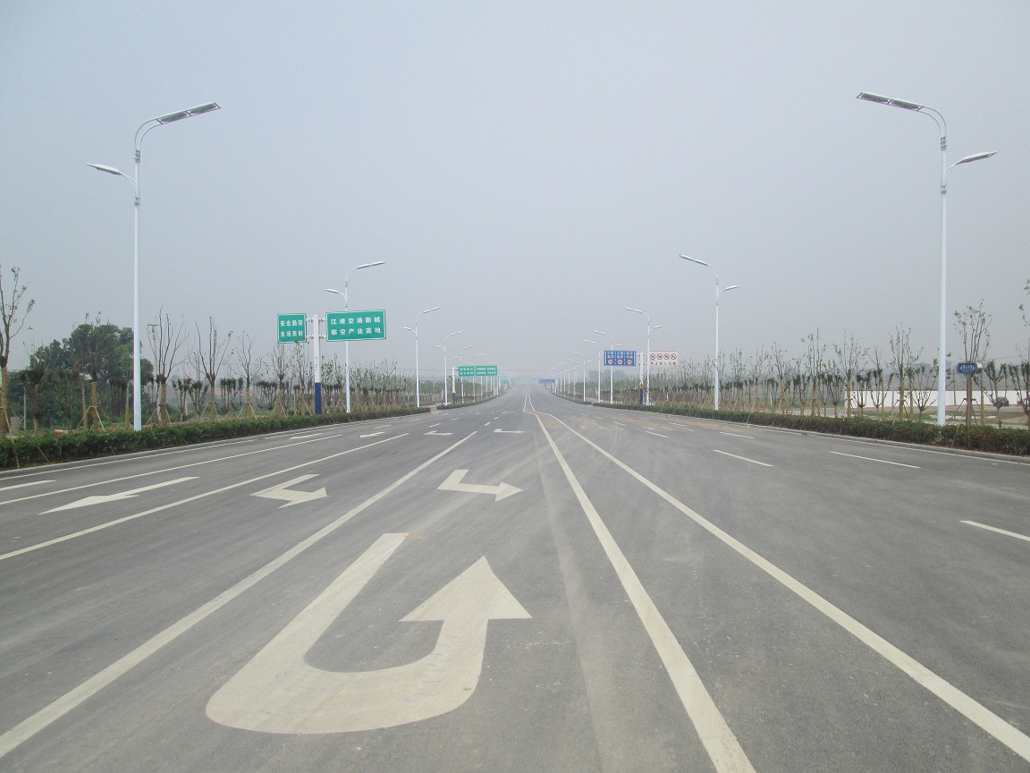 寿州大道: 3米(人行道)+ 7米(辅非混行道)+ 4米(主辅分隔带)+ 12米(机动车道)+ 8米(中央分隔带)+ 12米(机动车道)+4米(主辅分隔带)+ 7米(辅非混行道)+ 3米(人行道)。其中主车道路面结构为:4cmAC-13C细粒式改性沥青混凝土+6cmAC-20C中粒式改性沥青混凝土+8cmAC-25C粗粒式沥青混凝土。