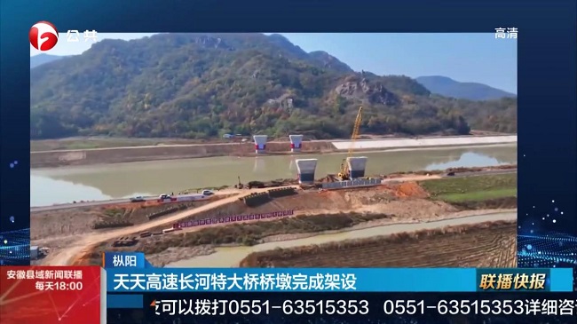 近日,安徽卫视公共频道以《天天高速长河特大桥项目桥墩完成架设》为题,对路桥集团项目建设情况进行了报道。