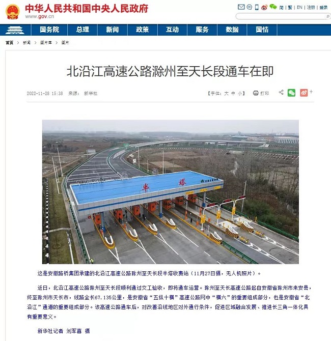 12月2日11点58分,由安徽路桥集团参建的北沿江高速公路滁州至天长段正式通车!