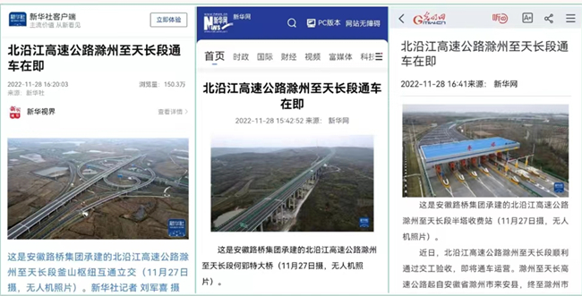 中央人民政府门户网站、新华社、光明网、中国青年网、中安在线(中英文两版)、《市场星报》、《马鞍山日报》、《新余日报》等国家级、省、市级主流媒体先后围绕路桥集团建设成果、为通车所付出的辛勤努力予以重点呈现。