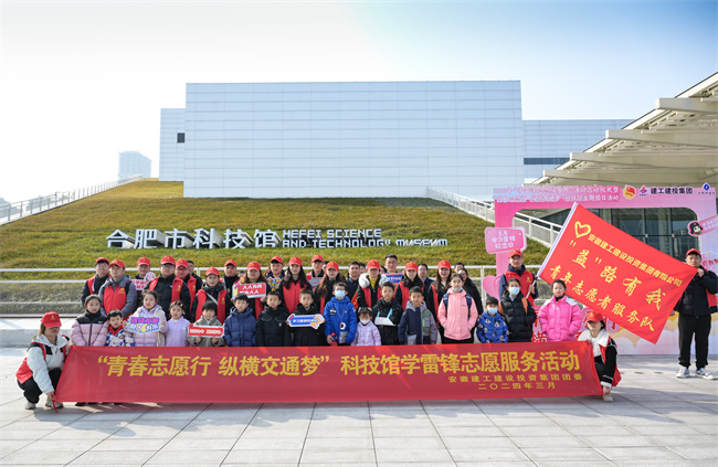 为全面贯彻落实习近平总书记关于学雷锋志愿服务的重要指示精神,进一步弘扬公司“益”路有我志愿者服务品牌的核心价值,科普道路桥梁技术知识,展现建投集团青年风采。3月2日上午,建工建投集团“学雷锋志愿服务月”活动启动仪式暨“青春志愿行 纵横交通梦”科技馆主题团日活动在合肥科技馆(蜀西湖馆区)顺利举行,中安在线报道关注。
