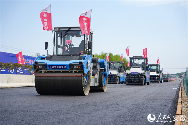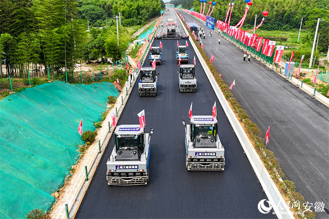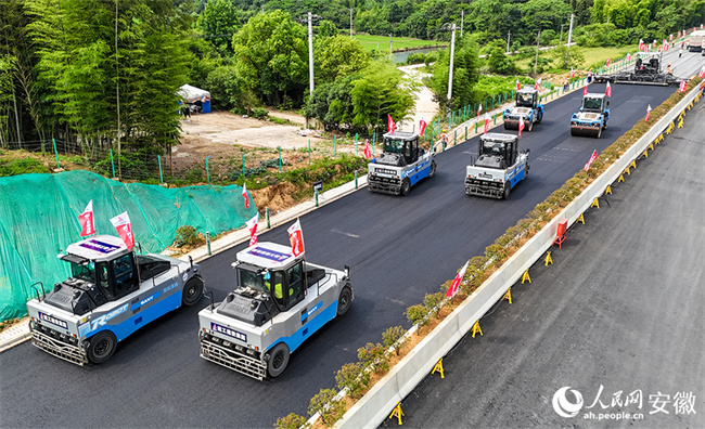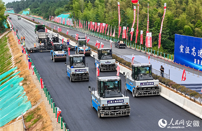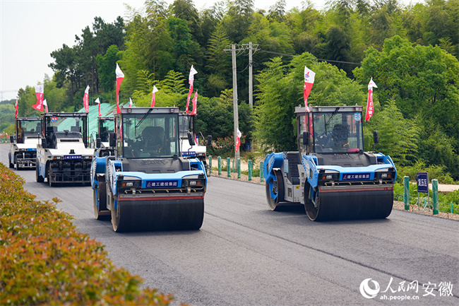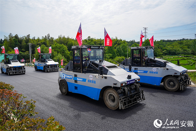 人民网宣城6月6日电(记者苗子健)6月3日,在宣泾高速一期01标项目现场,1台大型摊铺机和6台压路机在没有驾驶员的情况下,通过集群化协同作业的方式,精准完成了沥青面层摊铺、碾压工作。这也是安徽高速公路项目首次运用“无人摊压机群施工”这种智能化的方式进行作业。