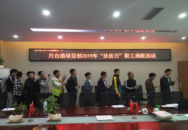 今年10月17日是我国第6个“扶贫日”,为弘扬中华民族扶贫济困的优良传统,彰显国企担当,根据建工集团《关于组织开展 2019 年“扶贫日”职工捐款活动的通知》文件精神,路桥集团积极组织,在公司范围内开展爱心扶贫捐款活动。