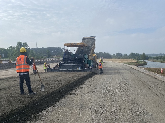炎炎夏日,建工建投集团G105、S237浒山湖至岳武高速源潭出入口段改建工程(第二期)设备租赁公司项目员工不畏高温天气,抢工期,赶进度进行沥青下面层摊铺工作,项目员工全员在岗确保沥青摊铺工作顺利进行,保障项目早日交工。