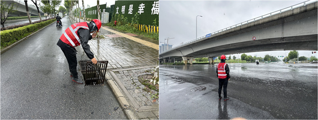 为应对本轮强降雨,锦绣大道(上海路-上东路)项目安排人员轮流值班巡查、严格执行汛期24小时值班制度,保障信息畅通,做到任务到岗、责任到人。密切关注施工现场雨情、水情变化,及时打开雨水箅助排,切实以实际行动共同筑牢防汛的“安全堤坝”,彰显国企责任担当。