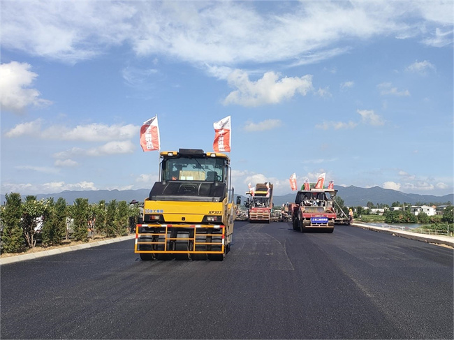 在G105、S237改建工程项目的施工现场,机械声阵阵轰鸣,正在进行规模化沥青中面层摊铺,项目部对沥青混合料的温度、压实度、厚度等各各项指标加强过程管理,保障施工安全和质量。