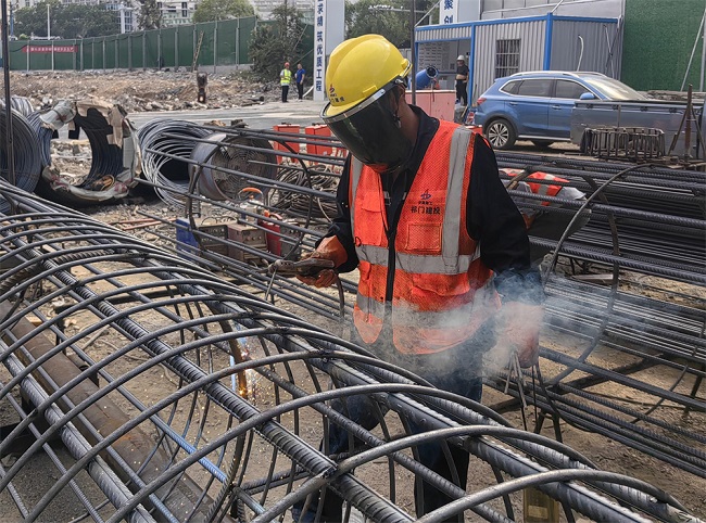虽正值盛夏酷暑,祁门建投梅城大厦项目及低碳科创园项目的建设现场依然热火朝天。头戴黄色安全帽的钢筋工人,戴着面罩及厚厚的手套,即使经受着高温天气和焊接火星的双重夹击,仍没有一丝懈怠,全神贯注地焊着手中的钢筋笼。热浪中,工人们身上的衣服已是湿了又干、干了又湿,但手中的工作没有丝毫的懈怠和疏忽,用顽强的毅力和不屈的精神对抗着高温的侵袭。