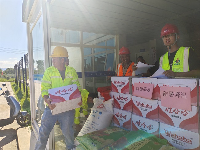 为保障户外工作者安全度过高温炎夏,五蒙高速05标项目多措并举,全方位多角度为一线生产人员提供防暑降温保障。利用班前会学习《夏季安全生产措施》,做好宣传教育工作;为生产一线班组购买并及时发放藿香正气液、人丹和盐汽水等防暑降温物资;设立“清凉驿站”、错峰施工等方式,积极做好防暑降温各项工作,为烈日下的坚守者撑起“遮阳伞”,用实际行动践行责任担当,为项目生产的安稳运行保驾护航。