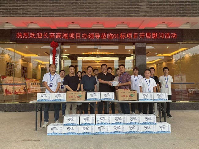 骄阳似火,热浪滚滚。8月5日,长高高速项目办副主任龚磊,工程计划部副部长汤晨俊一行赴长高高速CG-1标项目开展“送清凉”慰问活动,为坚守岗位、奋战一线的工程建设者们送去关怀与问候。