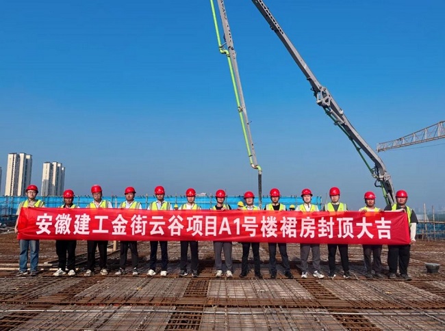 2024年8月30日,安徽建工天衢金融中心及数字智慧产业园项目(金街云谷)裙房主体结构顺利封顶,标志着天衢金街云谷项目建设工作正式进入后续二次结构及装饰装修施工阶段。
