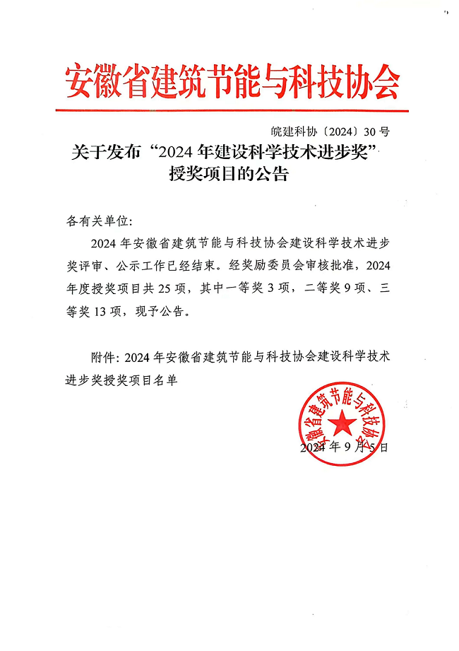 该奖项是由安徽省建筑节能与科技协会设立的一项科技奖项,旨在表彰和奖励为促进全省建设行业科技进步做出突出贡献的单位和个人。