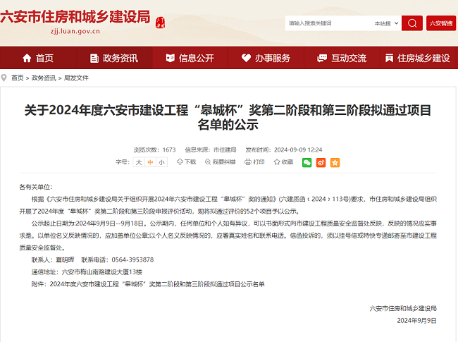 近日,由建工建投承建的舒城县城西公交枢纽站项目经过资料审核、现场复查等评审环节,荣获六安市住房和城乡建设局颁发的2024年度六安市建设工程“皋城杯”奖荣誉称号,该奖项是六安市市级建设工程质量最高荣誉奖。