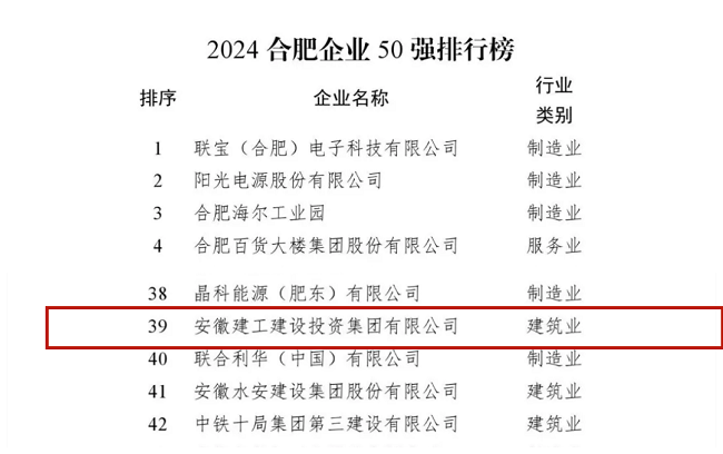 2024年9月22日,合肥市企业(企业家)联合会发布2024合肥企业50强榜单。凭借出色的综合实力,公司连续三年入选!