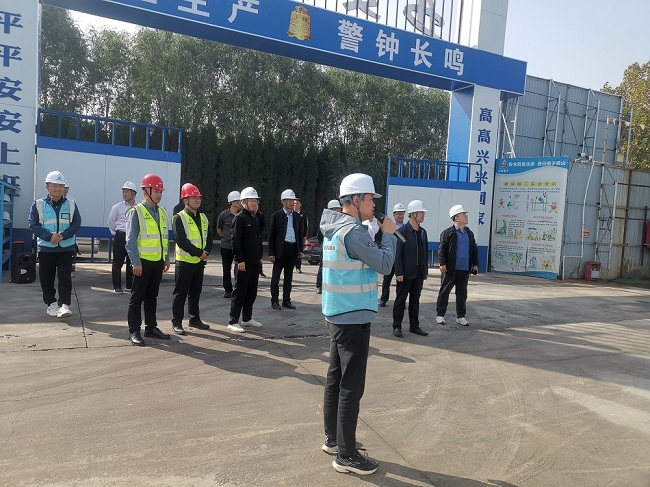 张风江一行实地参观项目施工现场,通过听取汇报、查看现场、交流询问等方式,详细了解项目管理水平、扬尘治理、文明施工等方面经验做法,就进一步提高施工管理水平、优化施工流程、加强文明施工等方面进行深入探讨和交流,并对项目的施工进度以及安全质量管控情况给予了充分肯定。