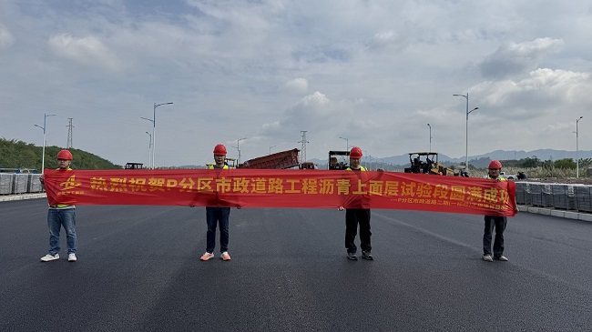上面层沥青试验段摊铺的圆满完成,为后续沥青路面施工的快速推进奠定了坚实基础。全体参建人员将继续齐心协力、铆足干劲,抢抓晴好天气,以最高标准、最佳状态、最实举措,凝聚一切力量推进项目建设,全力冲刺剩余道路工程目标任务。