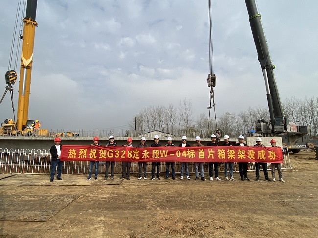 G328项目起点位于定远县城北,接北京西路,向西经城北水库北侧、解放水库北侧、西卅店南侧、在永康镇南侧上跨G3京台高速公路,终点接永康镇西侧G328(原S334)弯道,全长33.668公里。为确保首片梁架设任务顺利完成,项目部超前谋划,科学组织,制定了详细的施工组织计划,现场员工各司其职,持续奋战,在确保梁体安全运输的基础上更加快了架设进度。