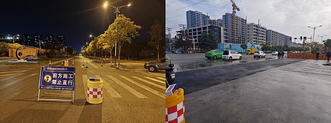 该路口位于交通繁忙的枢纽地带,周边环绕着多个居民区,白天车流量巨大。为了将对日常交通的影响降到最低,方便周围居民出行,项目部经反复论证,决定采取夜间施工,并制定详尽的应急预案。同时为了确保过往车辆和行人的安全,现场设置了清晰的交通导向标志,安排专职人员进行疏导,于次日早上八点前圆满完成管道铺设,路面恢复。