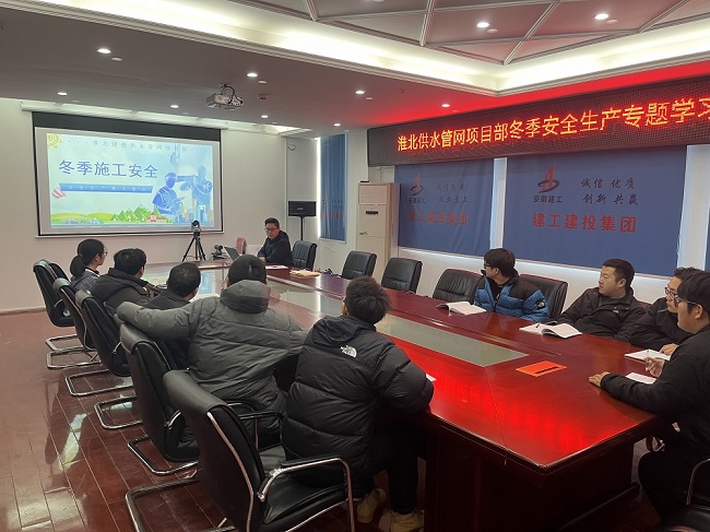 随着气温下降,施工环境面临低温挑战。为保障人员安全和工程顺利,淮北供水管网项目部于12月15日晚组织了冬季安全生产专项培训,全面排查施工过程中的安全隐患。
