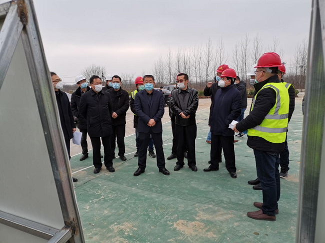 在项目驻地施工现场,黄惠民一行认真听取了项目关于疫情防控、复工复产、下步计划等工作的情况汇报,对项目扎实做好疫情防控工作、率先展开驻地建设施工给予高度赞扬,并强调当前的工作总基调是疫情防疫和复工复产“两手抓、两手硬、两不误”。他强调,项目部要贯彻落实好关于防疫和复工复产的最新要求,做好防疫物资采购、人员登记等各项工作,全力推动项目驻地、场站建设和其他施工准备工作,确保年度计划顺利完成。黄惠民表示,希望以本项目为契机,深化合肥交投与路桥集团的进一步合作,推动双方共同发展迈上新台阶。