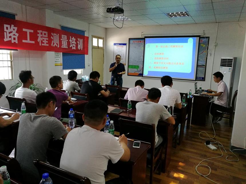 8月4日,安徽路桥集团第一届公路工程施工测量培训在S215-01标项目部会议室如期开展。