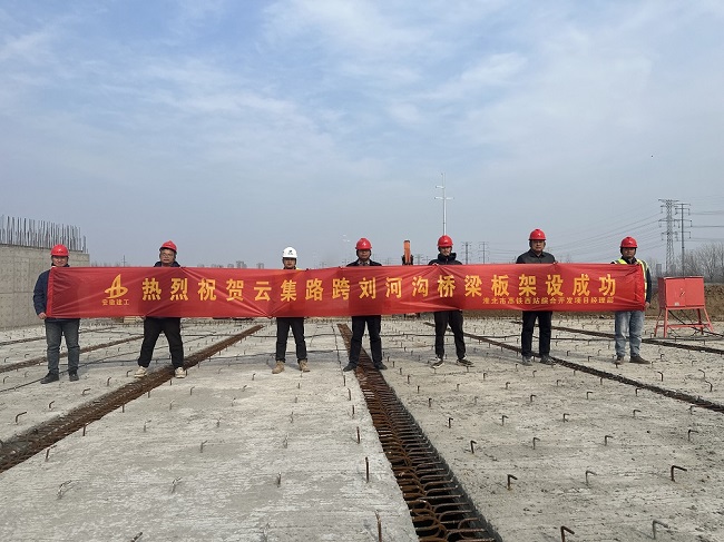 3月9日下午,随着最后一片预制箱梁精准就位,建工建投集团淮北市高铁西站综合开发项目云集路跨刘河沟桥梁板架设圆满完成。