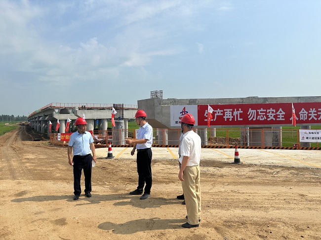 8月23日上午,建工股份党委副书记徐文联一行赴建工建投集团淮桐高速05标项目开展“流动红旗”党组织现场验