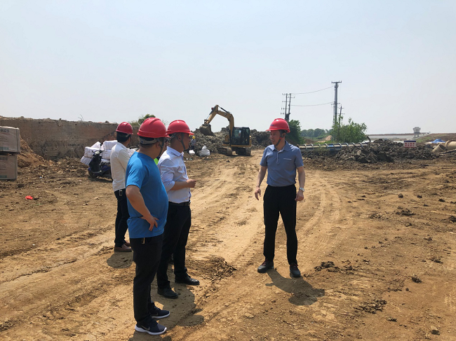 在黄陂湖项目,盛明宏一行深入施工现场,查看了预制梁场、现浇梁支架搭设、防汛准备工作等,详细了解工程进度和节点完成情况以及员工的生活状况。