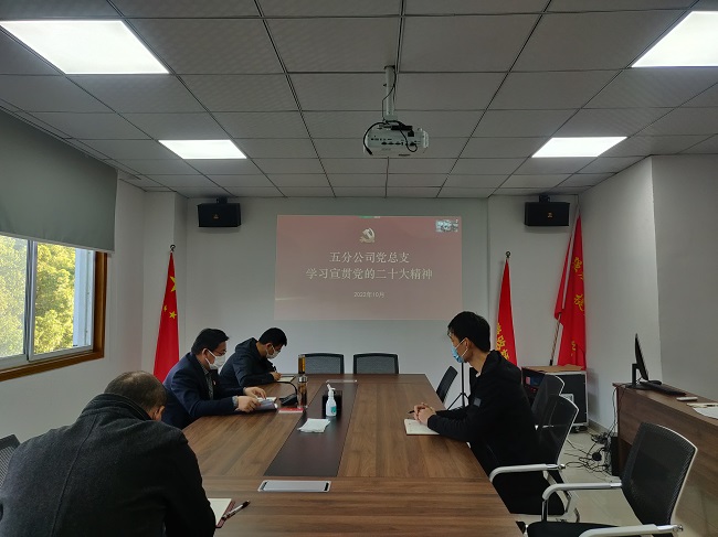 10月29日,五分公司党总支以线上线下相结合的方式召开党总支专题学习会,学习贯彻党的二十大精神。党总支书记朱大俊同志带领全体党员从二十大召开的重要意义、会议主题、重要内容等进行了深入学习和解读,党总支委员围绕学习内容交流学习体会。