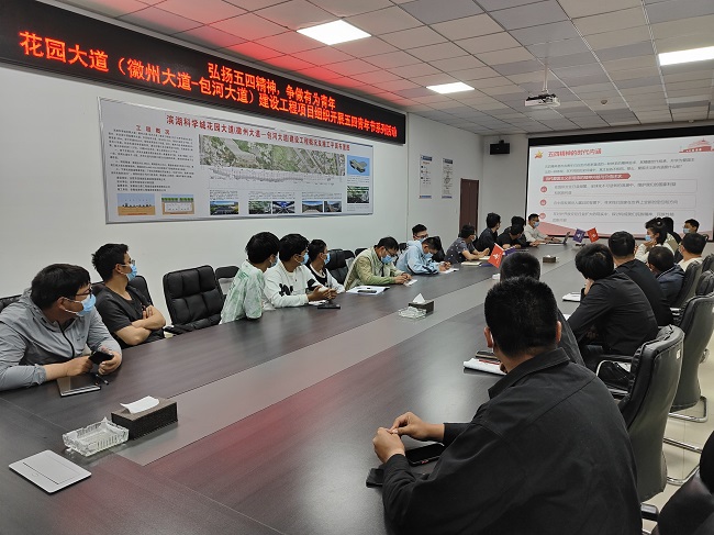 节日不停工,奋战在一线。槐树湾路项目组织开展了“高举‘五四’火炬,争当青年先锋”主题活动,引导项目青年员工坚守岗位,奋战施工、防疫一线。