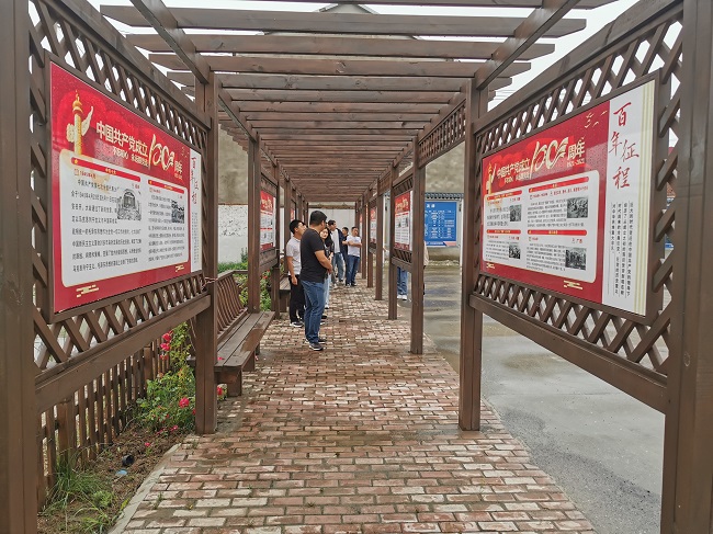 打造党史长廊,营造浓厚氛围。项目党支部利用文化宣传长廊,打造党史学习教育新阵地,文化长廊展示了中国共产党辉煌历程,浓缩了中国共产党人艰苦创业、继往开来的丰功伟绩,为职工提供了学习党史的学习平台,成为项目部一道亮丽风景线。