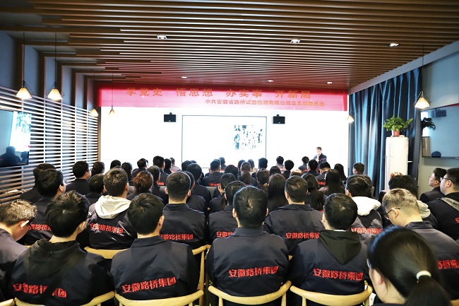 上午,由检测公司党总支副书记殷铭就中国共产党发展史、路桥集团发展史、检测公司发展史三个部分展开党课教育。首先殷副书记以中共一大到十九大历程为主线,围绕建党以来重要历史事件,给我们呈现了一幅中国共产党在艰难探索中顽强拼搏,一步步前进、发展的历史画卷。接着,殷副书记带领大家回顾了路桥集团、检测公司发展大事记,详细介绍了2020年路桥集团、检测公司各项指标任务完成情况和“十四五”发展规划。