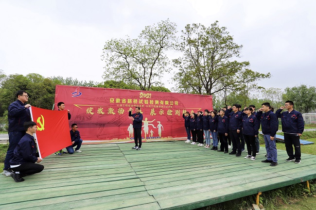 为深入学习贯彻习近平总书记在党史学习教育动员大会上的重要讲话精神,号召广大党员更好的“学党史、悟思想、办实事、开新局”,传承红色精神。恰逢检测公司公路工程综合甲级资质取得两周年之日,2021年4月25日,检测公司在合肥大圩红色教育营地举办“学党史、传精神”红色主题活动,检测公司母体党员、团员及职工参加了本次活动。