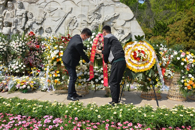 在庄严肃穆的革命烈士纪念碑前,同志们鞠躬默哀并敬献花篮,深情表达对革命先烈的无限哀思和崇高敬意;面向鲜红的党旗重温了入党誓词,浏览了革命先烈的英雄事迹,追思先烈的丰功伟绩。