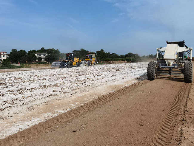 盛明宏查看了项目场站建设进度,详细了解施工前期工作进展及难点等相关情况。当得知项目使用自动环保性灰料撒布车开展灰土作业,既保护了环境,又能够均匀布灰,盛明宏对该项新工艺表示高度赞赏。他要求,项目部要加快工作进度,加强团队管理,做好工程质量及项目成本控制、安全与文明施工、物资与设备管理、业主关系维护等方面工作;项目负责人要认真落实安全生产责任制,增强全员工作的责任感,紧抓施工节点,精密计划,密切配合,确保质量安全管控措施落实到位。