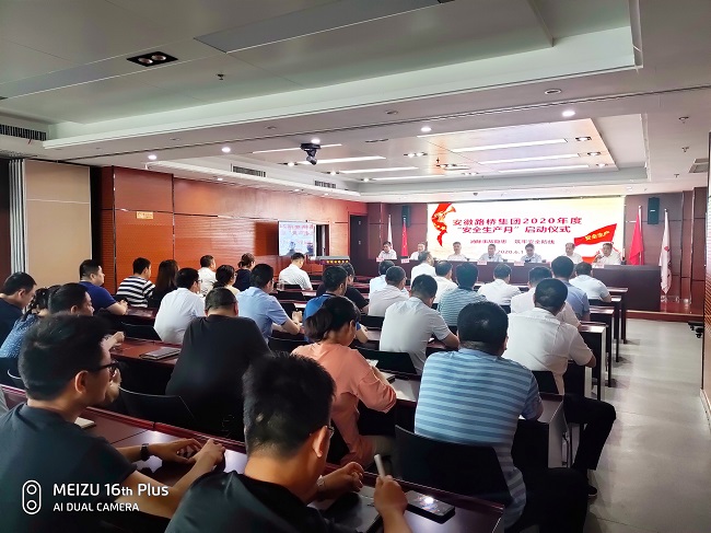 在全国第19个安全生产月来临之际,为提高全体员工安全生产意识,营造浓厚的安全氛围,6月1日上午8时,安徽路桥集团举行2020年“安全生产月”活动启动仪式。公司所有在肥领导参加启动仪式。