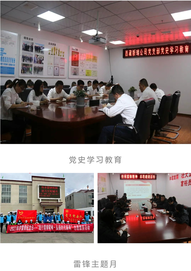 近年来,西藏新瑞公司这个青年大集体高度重视青年队伍建设,围绕党的二十大、建党100周年、建团100周年等,持续加强主题教育活动,强化理论武装;开展“青年先锋岗”“青年突击队”“青年技术攻关小组”等评比,激发青年创新创效热情;通过提升团干部综合能力、锤炼团员队伍,有效发挥团组织围绕中心、服务大局的积极作用;在项目施工生产一线展现青年力量,贡献青年智慧;组织青年围绕“益”路有我开展义务献血、赴敬老院慰问、社区服务、环保行动等志愿服务;发挥主责主业优势,高效履行国企社会责任。通过一系列活动,打造“青”字品牌,通过活动创建与企业生产经营、共青团工作、青年思想政治教育等工作深度融合,秉承“海拔高、追求更高,缺氧气、不缺志气”的精神,在市场开拓、资质升级、业态培育、管理优化方面取得积极成效,成为安徽建工、建设投资集团在藏的一面旗帜。
