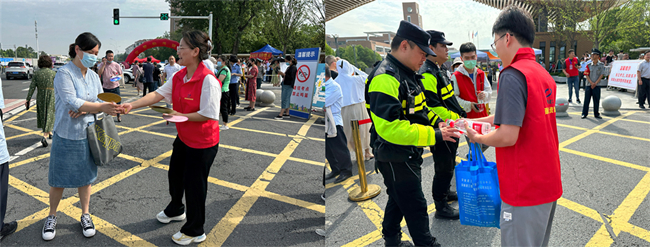 潜山路项目管理人员于清晨6点抵达在考点外,准备大量口罩、矿泉水、文具套装等,为考生、家长、执勤的干警等提供暖心服务。同时,项目部精心准备爱心送考车,为高考学子保驾护航。