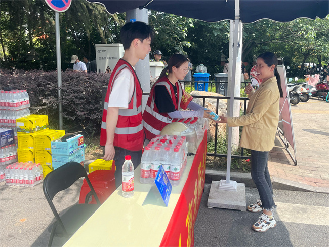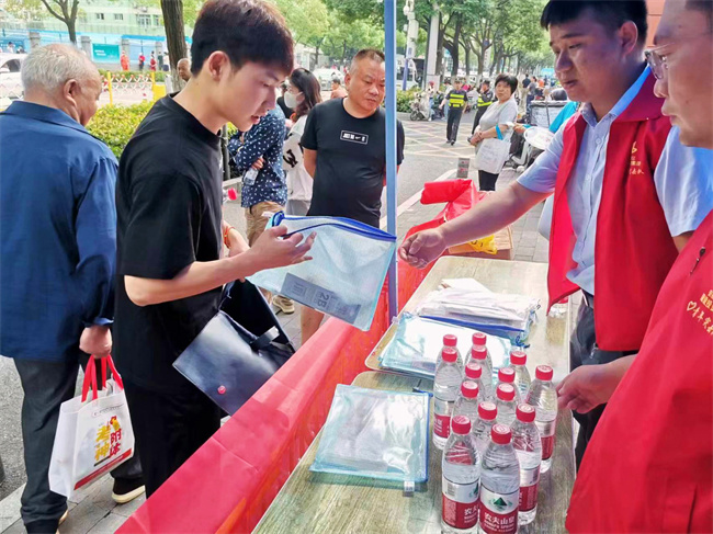 考点外,三分公司机关党支部为考生及家长们准备了充足的瓶装水、扇子、考试工具等用品,同时还配备了防暑降温药品等应急物资,全力以赴助力高考。