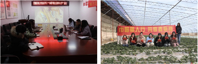 西藏新瑞公司组织全体女职工观看了“奋进新征程 巾帼绽芳华——巾帼劳模走进清华大学”活动直播。观看女职工劳模代表视频,聆听交流发言,汲取进取力量。组织开展消费帮扶,为乡村振兴“加把劲儿”,全体女职工前往大棚基地采摘草莓,一起体验着采摘的乐趣,零距离感受大自然。