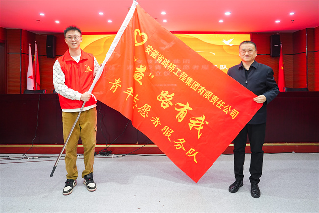 在“益”路有我青年志愿者服务队成立仪式上,公司党委副书记干戈发表动员讲话并授旗,宣布安徽路桥集团“益”路有我青年志愿者服务队正式成立,并寄语志愿者们:要提高政治站位,弘扬志愿服务精神;要强化责任担当,做好志愿服务工作;要树立品牌意识,带好志愿服务队伍。仪式在志愿者代表们庄严宣誓后结束。