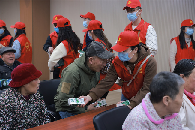 随后,志愿者服务队员们前往蜀山区益康敬老院开展志愿服务活动。在活动现场,青年志愿者们一起给老人送上米、油、牛奶等慰问品,大家陪老人拉家常,关心他们的日常生活,并为他们梳头、按摩、打扫卫生、整理房间等,叮嘱老人们要注意天气变化,适时添加衣物,保重身体。公司团委还联合“骆驼强子雷锋车队合肥分队”“李明宝志愿服务队”“红石榴艺术团”等民间公益组织,为老人献上精心准备的文艺表演。