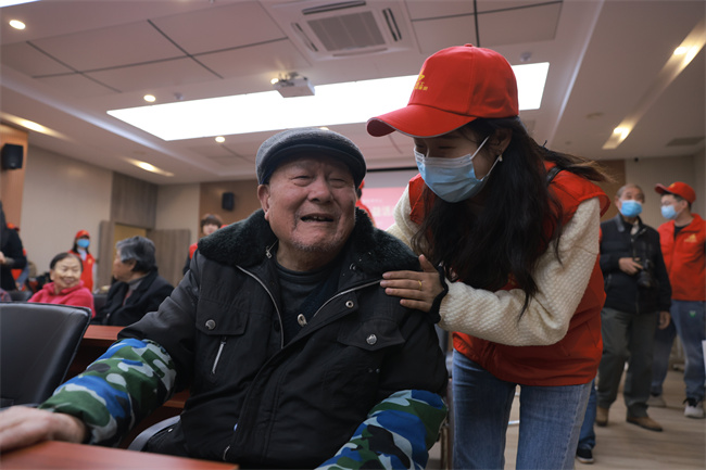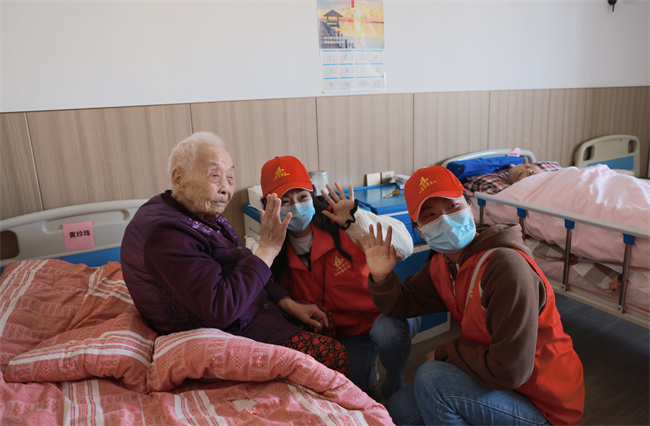 97岁的黄奶奶紧紧拉住志愿者的手,说道:“敬老院的食宿很好,谢谢你们的关心,欢迎你们经常来陪我们聊聊天。”幸福的笑容洋溢在老人们的脸上,现场其乐融融。