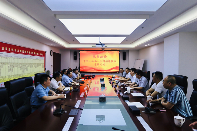 6月17日下午,中交一公局一公司党委书记刘拥华带队来公司洽谈合作,公司党委书记、董事长盛明宏接待了刘拥华一行,并主持召开座谈会。