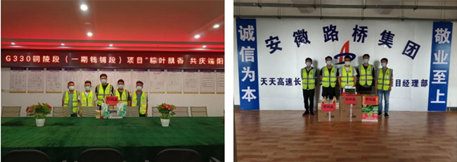 又逢一年端午至,片片粽叶裹温情。在端午节来临之际,天天高速长河特大桥主桥主墩项目和铜陵G330项目联合组织开展“粽叶飘香 共庆端阳”慰问活动,向奋战在一线的建设者们致以最诚挚节日的问候。项目部为大家准备了粽子礼盒、方便面、矿泉水等慰问品,分别发放给施工生产一线的工人,厨师、司机和项目管理人员,让他们感受到了项目大家庭的温暖,提升了员工的幸福感与获得感。