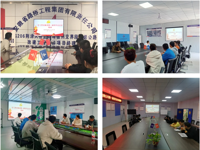 9月27日,中共安徽省路桥工程集团有限责任公司第一次代表大会胜利召开。为切实将公司全体干部职工的思想和行动统一到进入新发展阶段、贯彻新发展理念、构建新发展格局的战略决策上来,公司所属各子分公司、项目部积极组织学习宣贯公司第一次党代会精神,通过专题会议、学习会议、精神宣讲等形式,层层传达、形成共识、凝聚力量,将会议精神落实到实际工作之中。