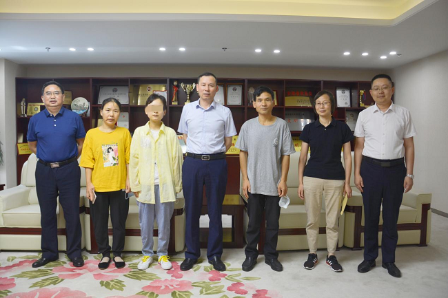 经过2个多月的治疗,现如今该同志的各项生理指标已回到正常标准,恢复情况良好,正等待下一阶段的治疗。9月26日,在家人的陪同下,她带着感谢信和病情好转的喜讯来到了公司,向公司领导及广大同事表达了深深的感激之情。公司领导亲切会见了他们,深切地关心她的治疗及恢复情况,询问在就诊治疗过程中是否存在困难和问题,并鼓励她坚定信心,相信医学,积极配合治疗,嘱咐他们结合实际病情,优先考虑专业水平高的医疗机构和专家,确保治疗效果。该同志表示,是集体给了她家一般的温暖,帮助她战胜病魔,重获第二次生命,今后她将带着感恩继续前进,为公司的发展壮大贡献自己的全部力量。