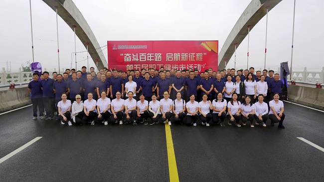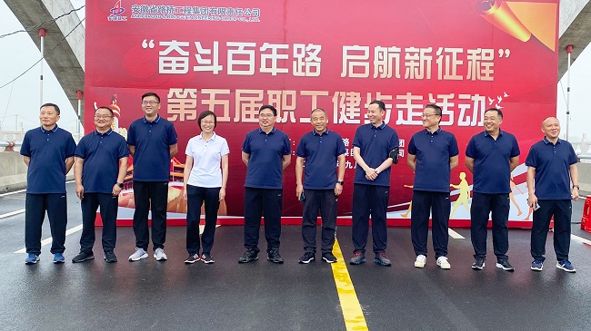 本次活动举办地点为五分公司所属市政项目——庐江黄陂湖项目,活动沿庐江县黄陂湖环湖道路行进,自县河大桥出发,经黄泥河大桥、瓦洋河大桥至终点,全程约12公里。在健步走活动过程中,展现了安徽路桥集团人朝气蓬勃的精神风貌,激发大家以更强健的体魄和饱满的热情投身到公司的发展建设当中,以优异的成绩庆祝建党100周年。