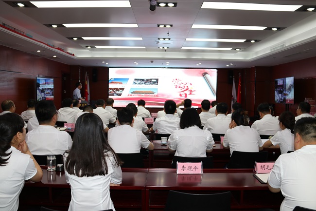 表彰会后,公司党委书记、董事长盛明宏以“学党史 悟思想 办实事 开新局,以优异成绩迎接建党一百周年”为题上了一堂党史专题党课。盛明宏同志从新民主主义革命、五四运动和马克思主义在中国的传播、中国共产党的成立、在土地革命战争中开辟农村包围城市的道路、在抗日战争烽火中发展壮大等5个方面,详细讲解了中国共产党从成立到发展壮大的相关内容,并结合公司当前的理论学习、作风建设、生产经营等现状,要求大家进一步开拓思路,谋划发展,广大党员干部要以身作则,加强党史学习,坚定理想信念,提升精神境界,敢于担当作为,提高素质能力;要在学习党史过程中,悟思想、办实事,真抓实干,务求实效,不断创新,把思想统一到公司生产经营发展上来,以实际行动和优异成绩庆祝建党100周年。